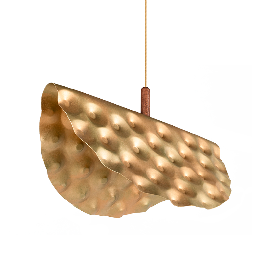 لوستر آویز مدرن گلدنمون یک روشنایی مینیمال با فرمی منحصر به فرد است. ظاهر بصری این روشنایی مدرن الهام گرفته از حفره های روی سطح کره ماه است. و میتوان اینگونه تصور کرد که ایلکین در نوآورانه ترین طراحی خود ماه را از دو طرف خم کرده است.